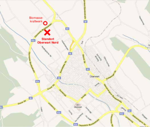 Das 51.576 m2 große Grundstück befindet sich im Norden von Oberwart im Industriegebiet an der Oberwarter Bundesstraße. Das Grundstück verfügt über eine direkte Zufahrt zum Kreisverkehr an der Ortseinfahrt von Oberwart, wo sich die Bundesstraße 63 mit der neuen Stadtumfahrung 63 A kreuzt. Es handelt sich dabei um eine der verkehrsreichsten Kreuzungen im gesamten Bezirk. Gewidmet ist das Grundstück als „Aufschließungsgebiet – Betriebsgebiet“. Auf der gegenüberliegenden Straßenseite ist die Ökoenergiezentrale angesiedelt. Dieses Biomassekraftwerk versorgt den Gewerbekunden verlässlich mit günstiger und umweltfreundlicher Energie, Wärme und Kälte.