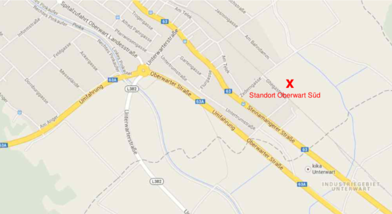 Das 73.766 m2 große Grundstück befindet sich im Süden von Oberwart im Industriegebiet an der Steinamangererstraße.